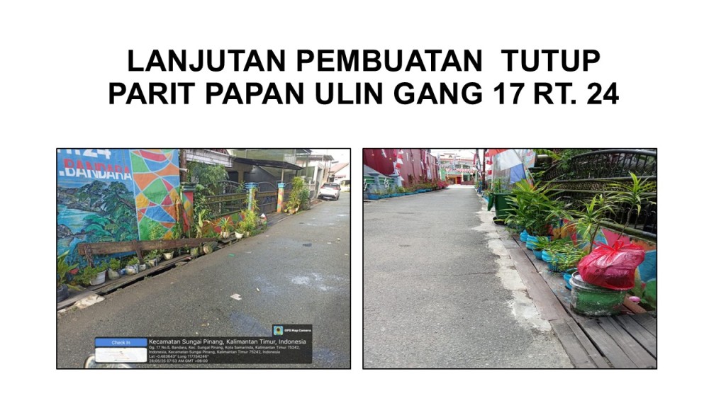 KEGIATAN SAPRAS LANJUTAN PEMBUATAN TUTUP PARIT GG. 17 RT. 24 October 03, 2025 KEGIATAN SAPRAS LANJUTAN PEMBUATAN TUTUP PARIT GG. 17 RT. 24 POKMAS BANDARA BERSERI