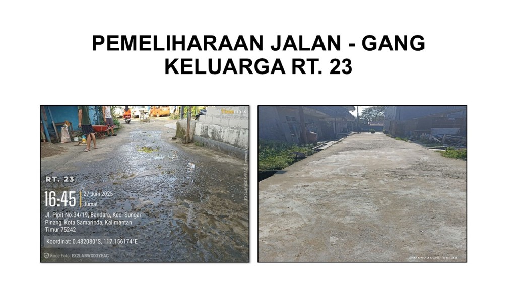 KEGIATAN SAPRAS PEMELIHARAAN JALAN GG. KELUARGA RT. 23 October 03, 2025 KEGIATAN SAPRAS PEMELIHARAAN JALAN GG. KELUARGA RT. 23 POKMAS BANDARA BERSERI