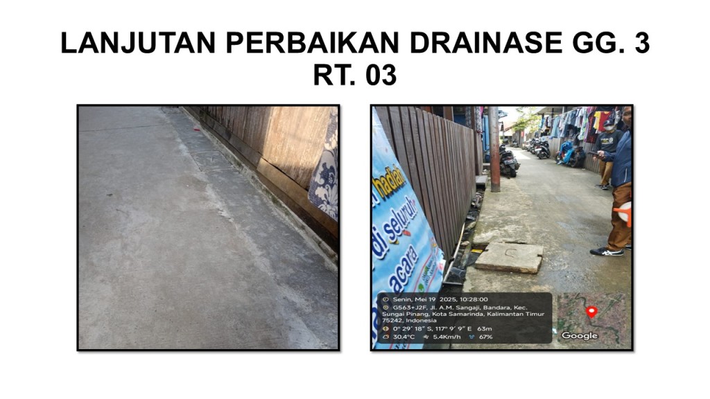 KEGIATAN SAPRAS LANJUTAN PERBAIKAN DRAINASE GG. 3 RT. 03 October 09, 2025 KEGIATAN SAPRAS LANJUTAN PERBAIKAN DRAINASE GG. 3 RT. 03 POKMAS BANDARA TANGGUH